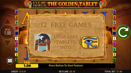 The Eye of Horus: Golden Tablet slot game has the following features: