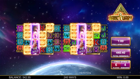 Dive into a world of ancient wonders and futuristic thrills with Sanctuary slot, the latest masterpiece from Big Time Gaming! This isn't your average Egyptian adventure - prepare for spaceship-shaped pyramids, dazzling visuals, and a whopping 4,096 ways to win!